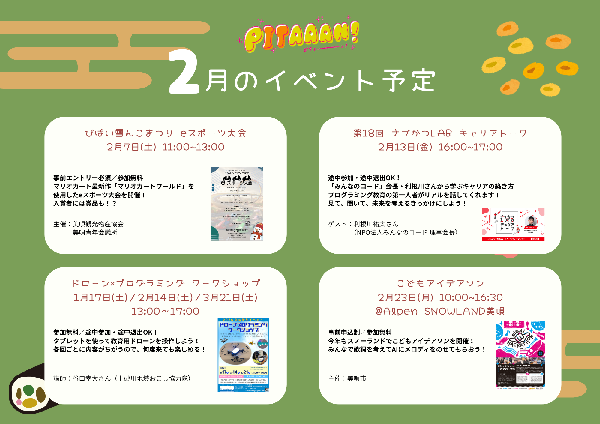 寒さが続く2月ですが、PITAAAN!では「考える・つくる・挑戦する」イベントが盛りだくさん!